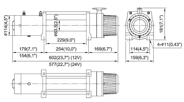 • Winch construction: Aluminum die cast housings with steel drum